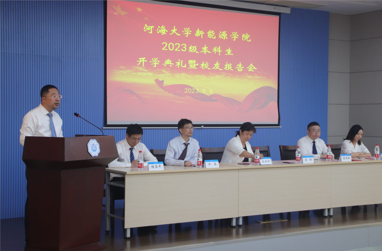 校友代表中国长江三峡集团有限公司江苏分公司生产管理部主管陈露露致辞,她以新能源科学与工程专业发展前景为切入点,分享了自己的工作经历,并鼓励新生同学们在今后的大学生涯中能够“勤学、善思、苦练”,学好专业知识和生存本领。