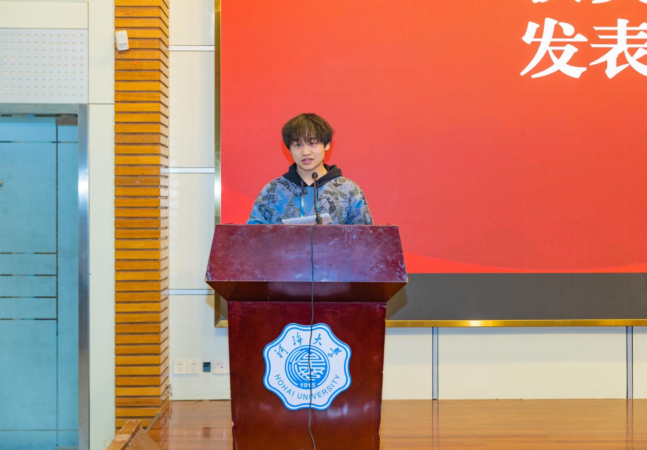 获一等奖团队代表陆雯发表获奖感言,简要介绍自己作品的内容和传达的信息,并表示:“作为一名河海广电人,我将继续用镜头记录生活,用影像传递环保理念。我知道一个人的力量小,但大家一起做,力量就大了。我也希望我们都能行动起来,一起保护低碳生活。”