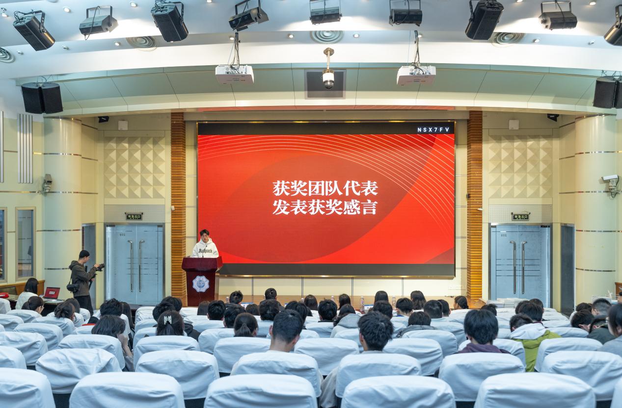 获风力赛道一等奖团队代表郭小庄发表获奖感言,首先感谢了永利集团3044提供的平台,并简述了比赛准备过程和团队的配合。最后,郭同学分享了在这次模型搭建比赛中的收获。