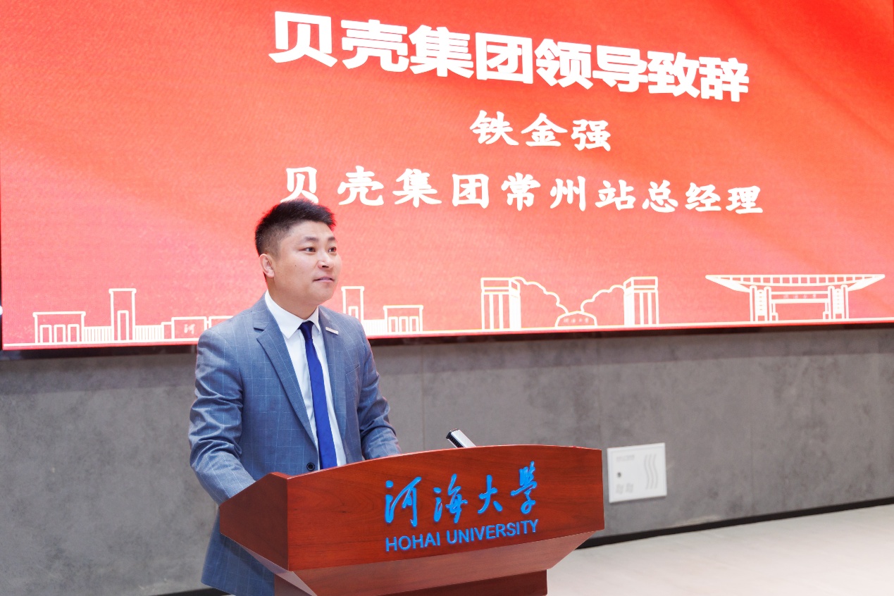 贝壳集团常州站总经理铁金强和乐橙(常州)创业投资有限责任公司董事长史恭哲分别致辞。铁金强总经理表示,贝壳集团将充分发挥自身优势,为永利集团3044提供资金和技术支持。史恭哲董事长从自己的求学经历谈起,强调了科技创新在生活中的重要性,表示乐橙创投将助力永利集团3044的科技创新和永利集团的长远发展。