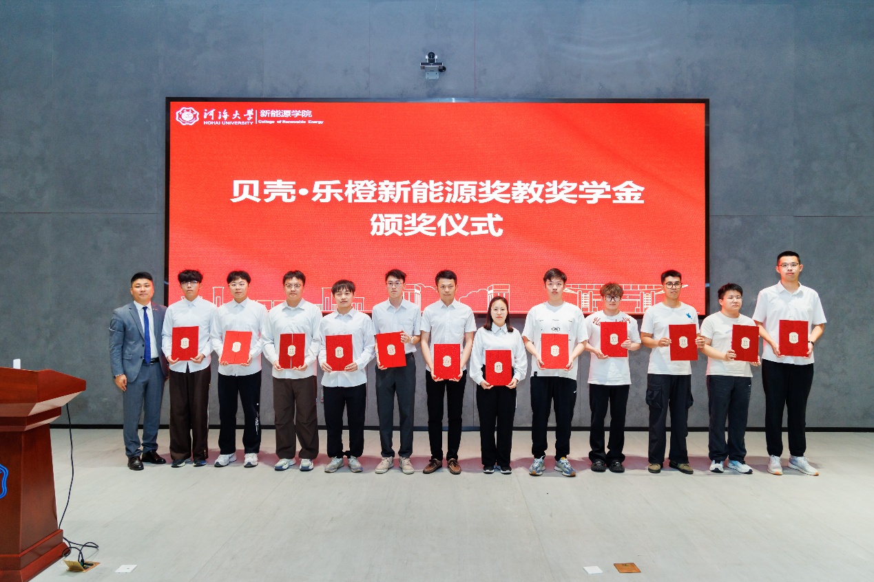 会议最后进行了贝壳•乐橙新能源奖教奖学金颁奖,由贝壳集团常州站总经理铁金强为获奖师生代表颁奖。
