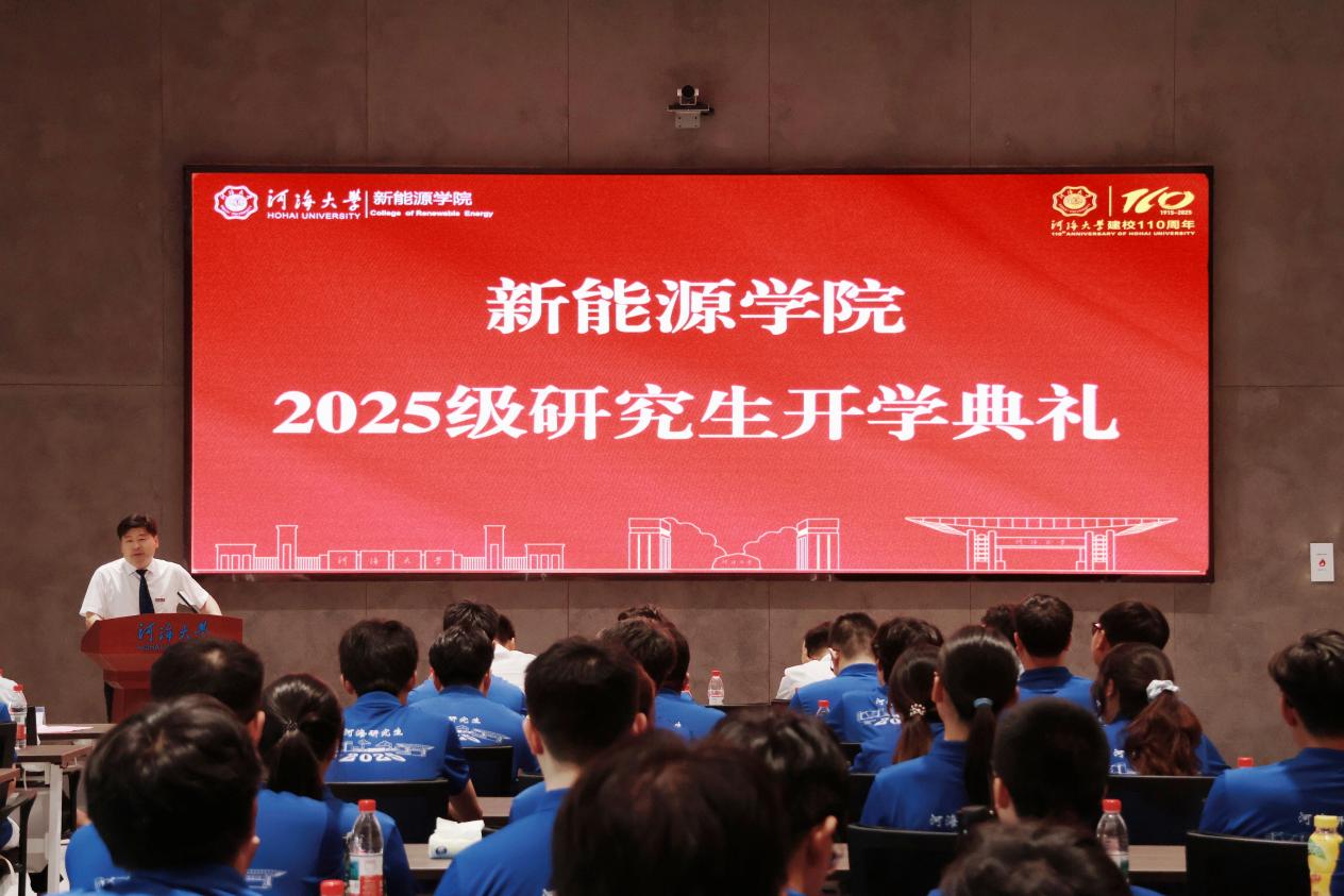 学院院长许昌教授发表演讲。他以3044永利集团 “治水兴邦” 的百年办学使命为切入点,回顾了学校新能源相关学科和专业的发展历程和突出成果。结合新能源产业发展的国家战略需求,勉励新生们把握时代机遇,深耕能源版图,用成果答“双碳”之问。他希望研究生同学们要磨砺意志,淬炼成长,学会创造知识,多花时间去深入思考、大胆尝试,敢于挑战传统、突破常规,在科研的海洋中乘风破浪、勇往直前;要开掘新知,探索未知,瞄准“卡脖子”技术,深耕细作,要学会交叉融合,打破学科壁垒,保持定力,务实笃行;要开放包容,和谐共融,积极拓展国际合作渠道,努力实现资源共享、优势互补。